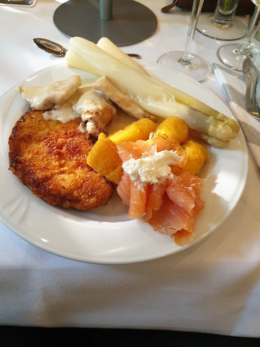 If you’re a fan of seafood, the Fischteller is a treat, artfully presenting Matjesfilet, Forellenfilet, and Räucherlachs, paired with delightful dips and served alongside Rührei and Bratkartoffeln for €17.90—perfect for sharing or indulging solo! And for those who revel in sizzling flavors, the Hähnchenbrustfilet in Parmesan crust, accompanied by grilled vegetables and aromatic rosemary potatoes for €17.80, promises an exquisite taste experience.